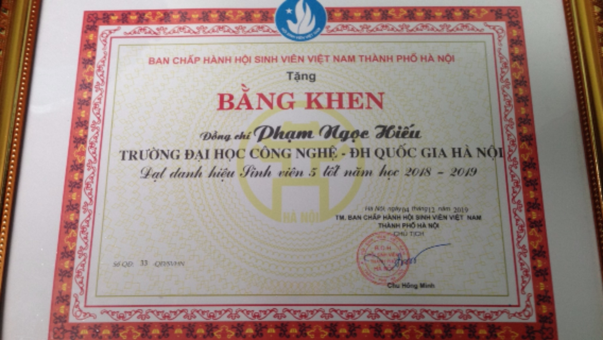 One of the 19 most outstanding students in the university to award the title of "Student with 5 merits" (Morality, Knowledge, Physical Health, Social Skills, Integration Competence) in the 2018-2019 and 2020-2021 academic year.